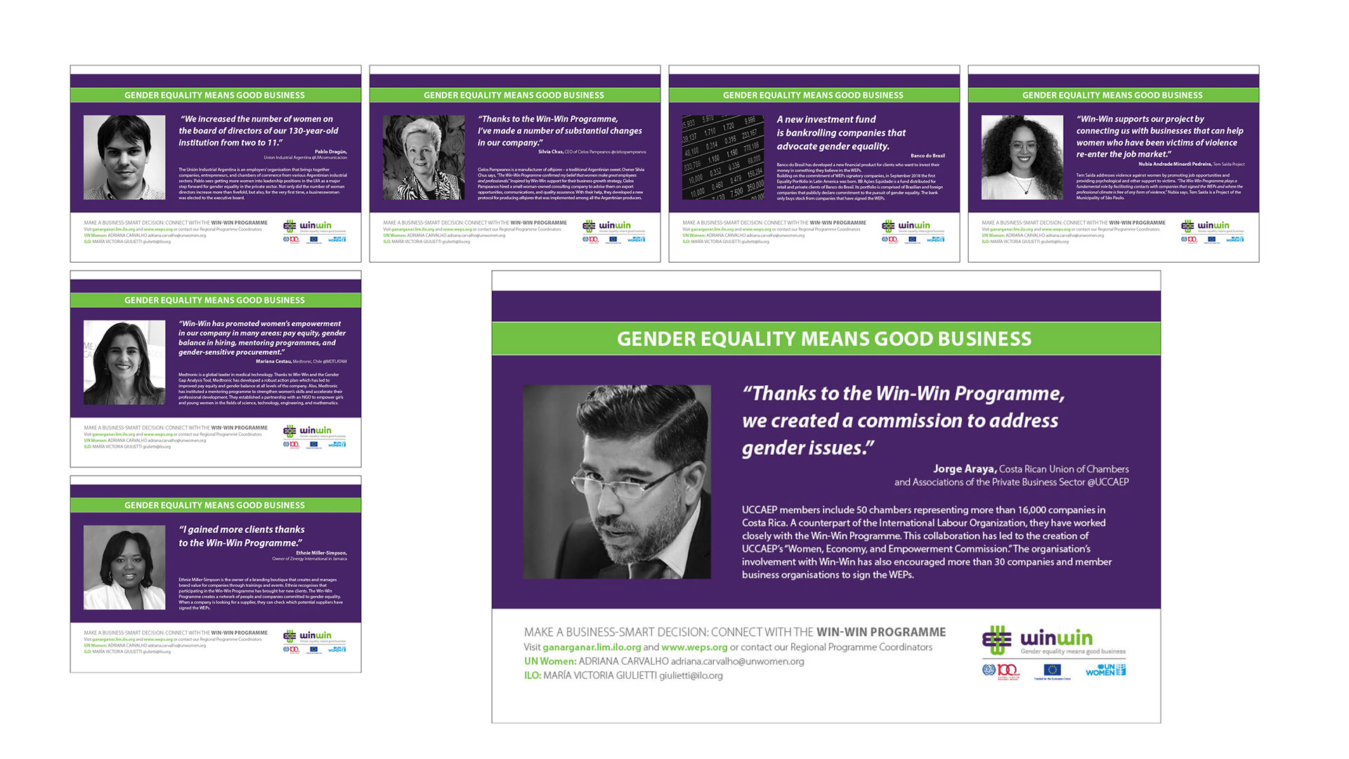 Design de brochure et webcards pour une campagne graphique et sur les réseaux sociaux pour l'égalité des sexes en Amérique latine et dans les Caraïbes.